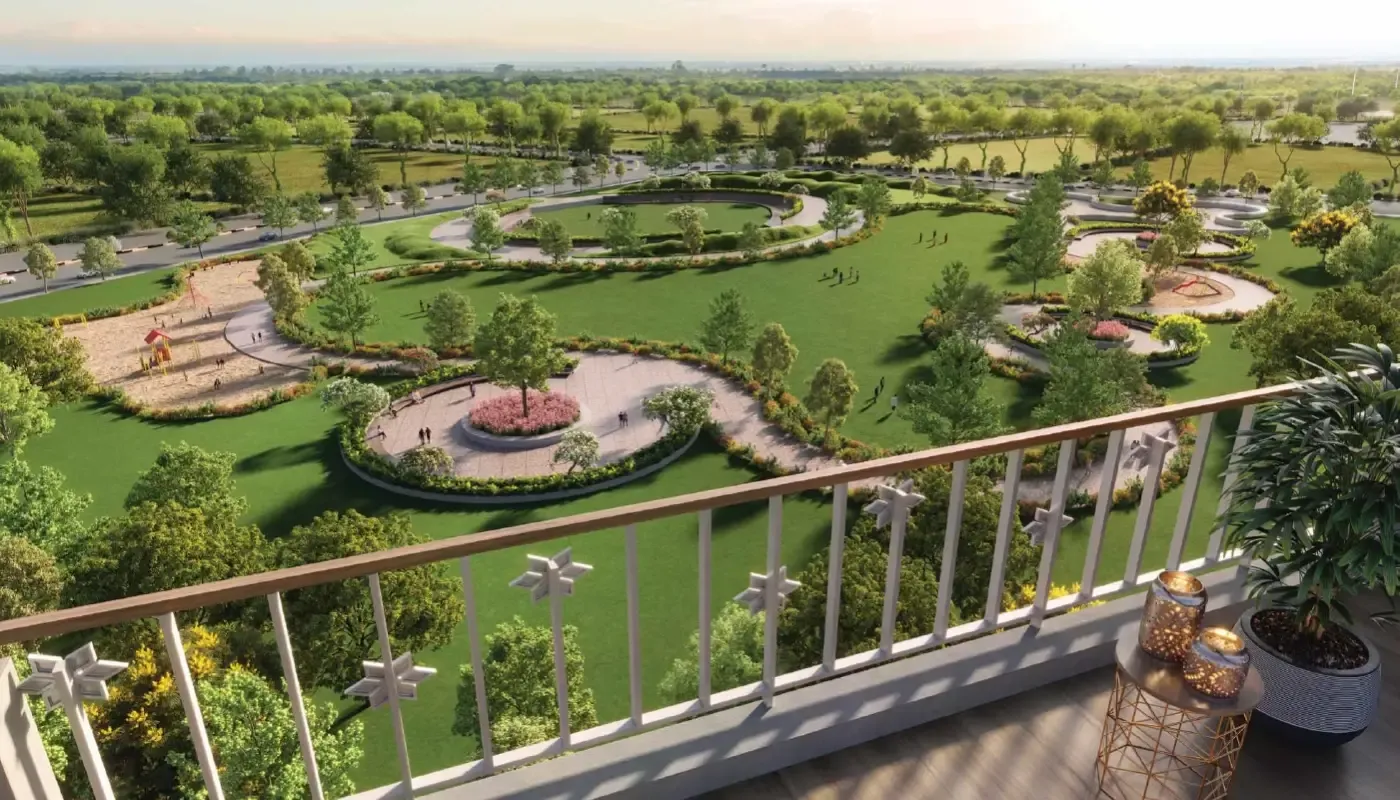 Lush green landscapes with beautifully designed gardens and open recreational spaces